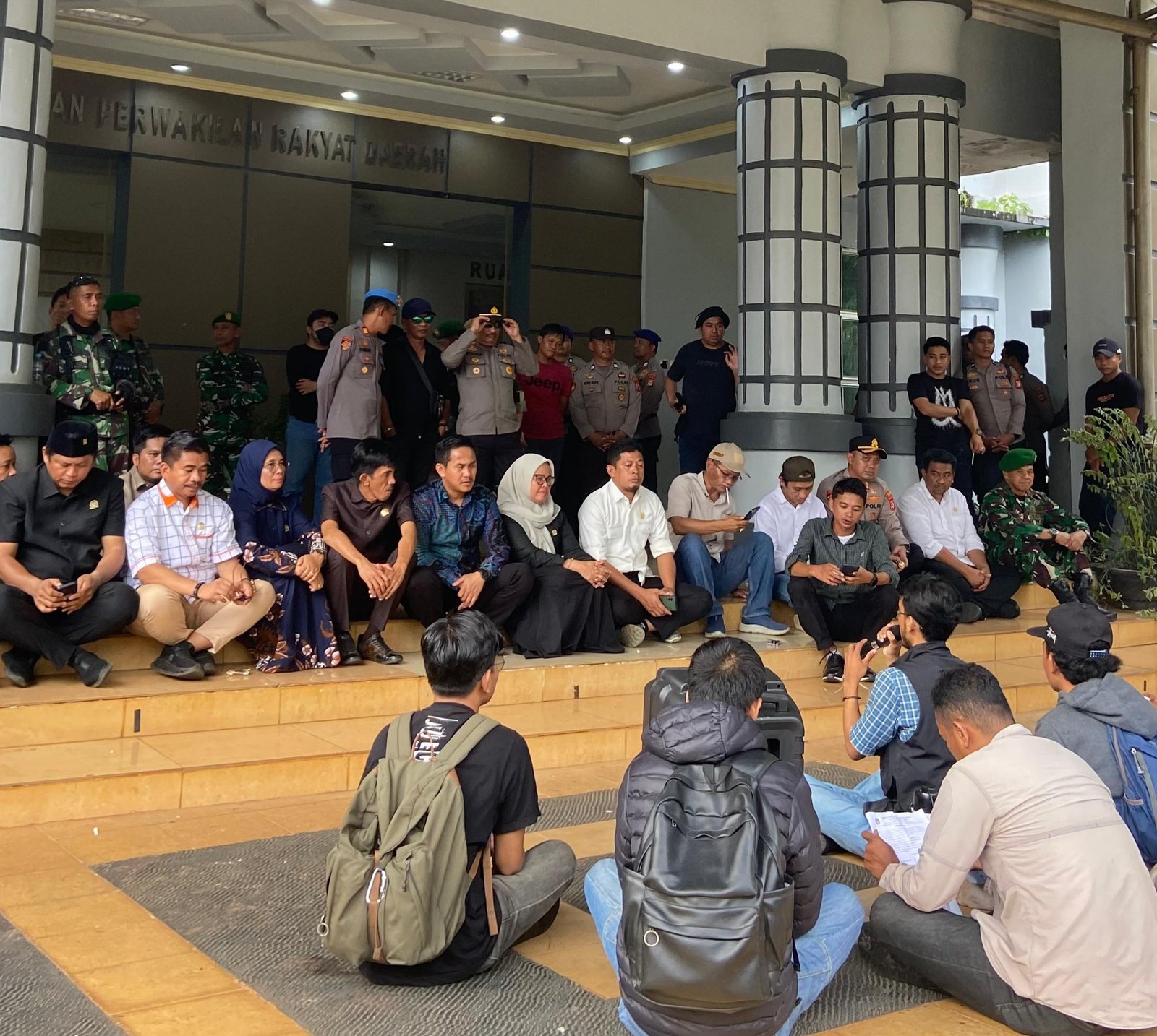 Ketua DPRD Ober Datte, didampingi Wakil Ketua Jihadin Peruge dan Hj. Harisah Suharjo, serta Pimpinan Fraksi dan anggota dewan lainnya, menunjukkan sikap humanis dengan duduk bersama para mahasiswa di tengah Aksi Unjuk Rasa beserta personel pengamanan dari Unsur TNI dan Polri.