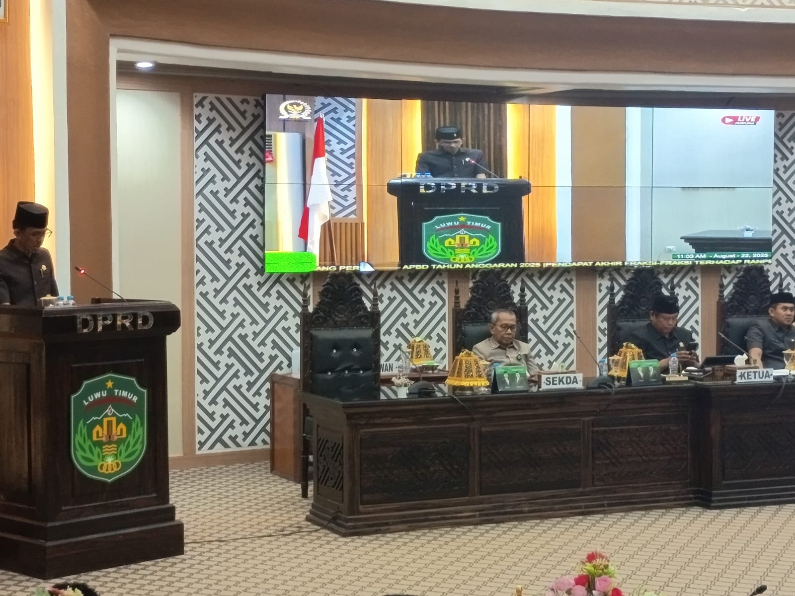 Luwu Timur, Koranta.id, 22 Agustus 2025 – Dalam pendapat akhir fraksi, Andi Ahmad, juru bicara Fraksi PDI-P DPRD Luwu Timur, menyatakan dukungannya untuk APBD 2025.