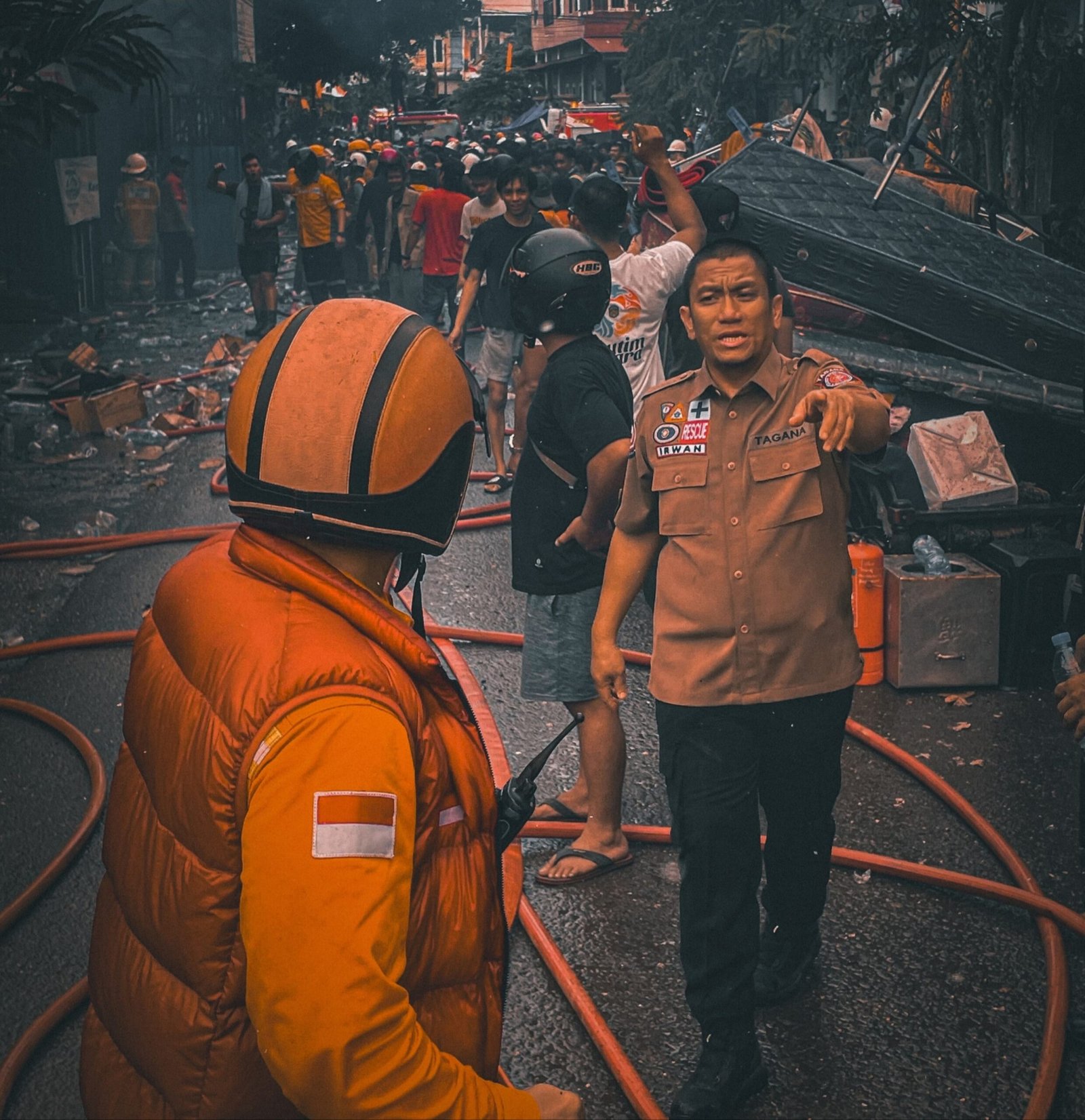 Meski kepulan asap hitam pekat dan kobaran api kian membesar, Bupati Irwan tampak tak gentar dan terus mendampingi upaya penanganan kebakaran. Sikap ini menjadi bukti nyata kepedulian dan kepemimpinan yang kuat di tengah situasi genting.