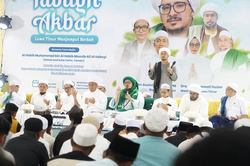 MALILI, Koranta.id, Senin malam, 17 November 2025 – ratusan jamaah tumpah ruah di Masjid Babul Khaer, Desa Puncak Indah, Kecamatan Malili. Mereka berkumpul dengan penuh semangat untuk menghadiri Tablig Akbar yang menampilkan ulama internasional asal Kota Tarim, Yaman, Al Habib Muhammad bin Al Habib Munsib Ali Al Habsyi.